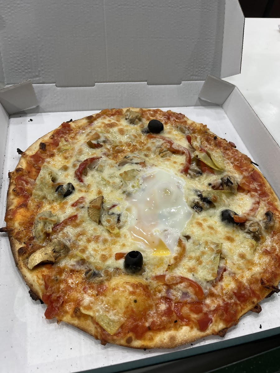 Bien établi depuis longtemps à côté de la station service d’intermaché. Pour commander, appelez en direct le numéro sur le menu au recto. Car on ne peut pas commander dans l‘appli kiosque à pizzas (apparemment un désaccord entre le gérant et la franchise). Du coup pas sûr que les promos/le programme de fidélité fonctionnent. Sinon les pizzas en elles-mêmes: bonne garniture, mais la pâte pas trop mon truc. Fine mais un peu comme un pain sans levain farine/eau/sel plutôt qu‘une pâte habituelle de pizzas italiennes. La 33cm est vraiment copieuse pour moi. La nouvelle pizza burrata est bonne.